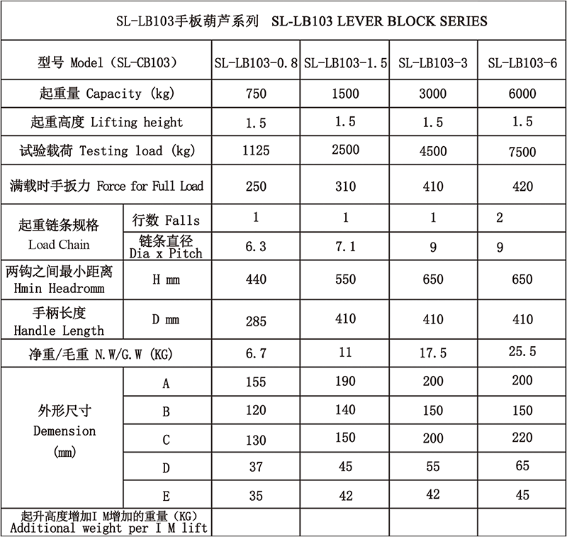 特点: 1、经热处理的钢板、齿轮、长轴强度更高。 2、上下吊钩均为合金钢锻造,并配有灵敏的安全闩。 3、韦斯顿式双卡不调节自动刹车系统。 4、360度旋转手柄方便在狭小空间使用。